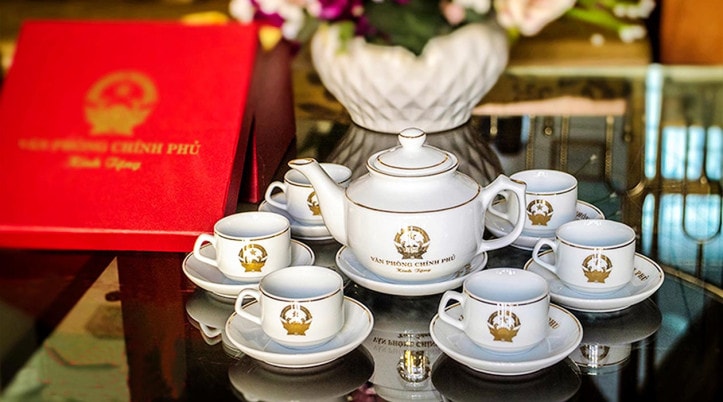 Bộ ấm chén uống trà Bát Tràng – bộ ấm chén uống trà Bát Tràng in logo làm quà tặng